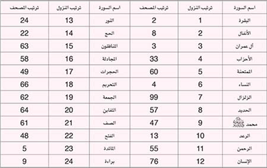 ترتيب نزول السور المدنية (26 سورة):