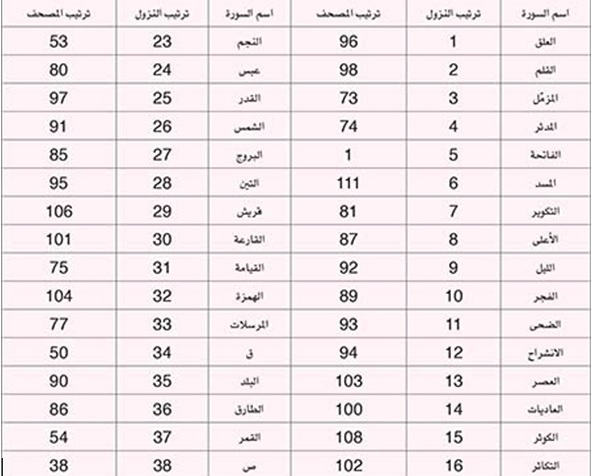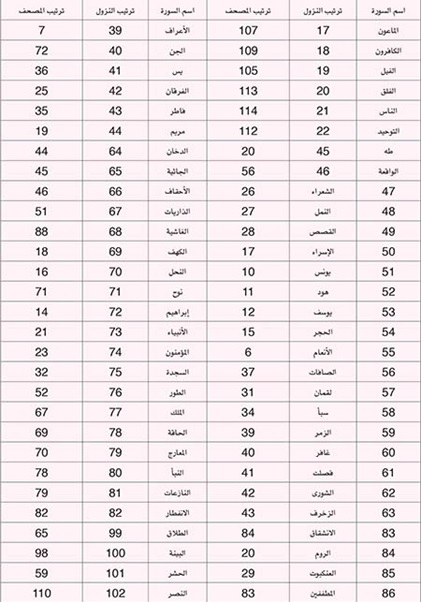 ترتيب نزول السور المكية (86 سورة):